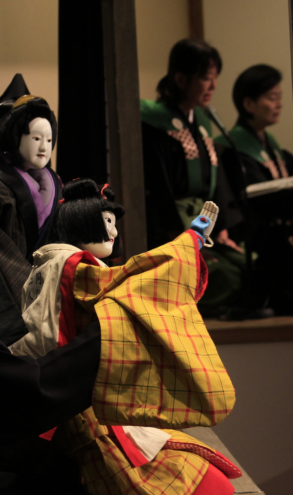 阿波人形净琉璃是日本的传统艺能表演艺术,它结合了太夫(讲说者)的说唱,三味弦的音律以及三位木偶戏师操纵的木偶,三者融为一体,共同演绎故事中登场人物的内心情感。