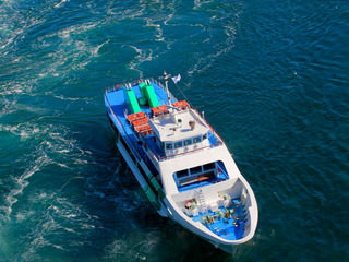 如果要看漩涡,有“德岛县立漩涡之道”,可从离海面高45米的玻璃面向下观看漩涡,还有“观潮船”可以近距离感受漩涡倒流时飞溅在身上的感觉。另外, 还有“鸣门天际线”,“鸣门公园展望台”,“德岛县立大鸣门架桥纪念馆埃迪”等。从这些地方可以眺望日光照耀下海面如镜的平稳的内之海,还有大小各种船舶穿梭往来的海岸线旁耸立的群山,同时还能将鸣门海峡尽收眼底。另外在美味土特产店林立的“千叠敷”,和“茶园展望台”等处,一边休息一边欣赏远处的漩涡也别有一番乐趣。