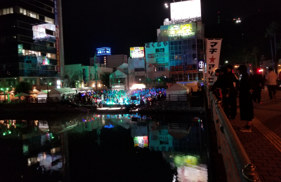 Live performances and talk shows with many singers and voice-actors will be held on the Shinmachi-bashi Higashi Park Stage, with the Shinmachi River behind it. During these three days, fans from all across Japan will gather here.
