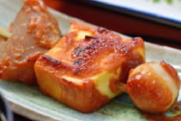 가즈라 다리 주변에서는 이야 지방에 전해지는 토란이나 곤약, 두부 등을 꼬치에 꽂아서 유자 된장을 발라서 굽는 요리인 "데코마와시"나 "메기 소금구이"가 판매되고 있습니다.