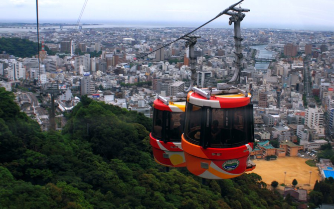 擁有美麗形狀的眉山是德島市的象徵。搭乘纜車約6分鐘就可抵達山頂。山頂上能一望城市風景,此處也是推薦的夜景景點。