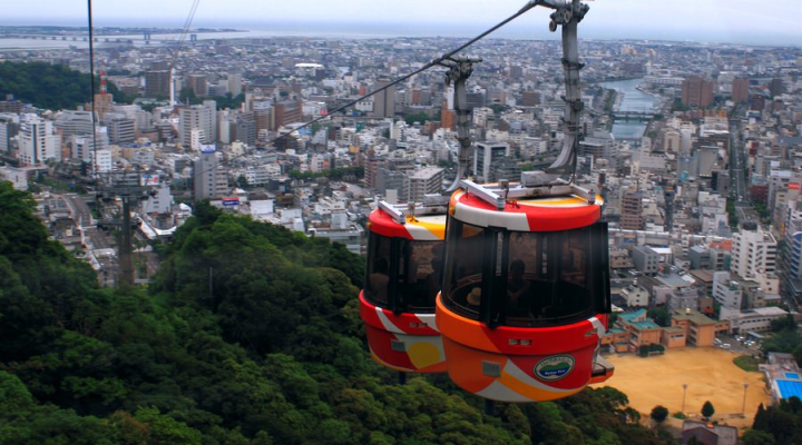 眉山是德島市的象徵。從山頂一眼望去,不僅德島市街、若是天氣晴朗時淡路島、紀伊半島也都可盡收眼底。索道山麓站位於阿波舞會館的5樓。