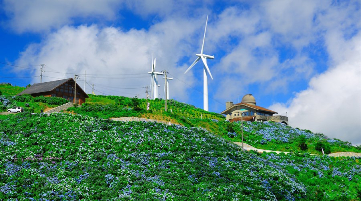 標高1019公尺。可以看到放牧的牛群及高原植物。