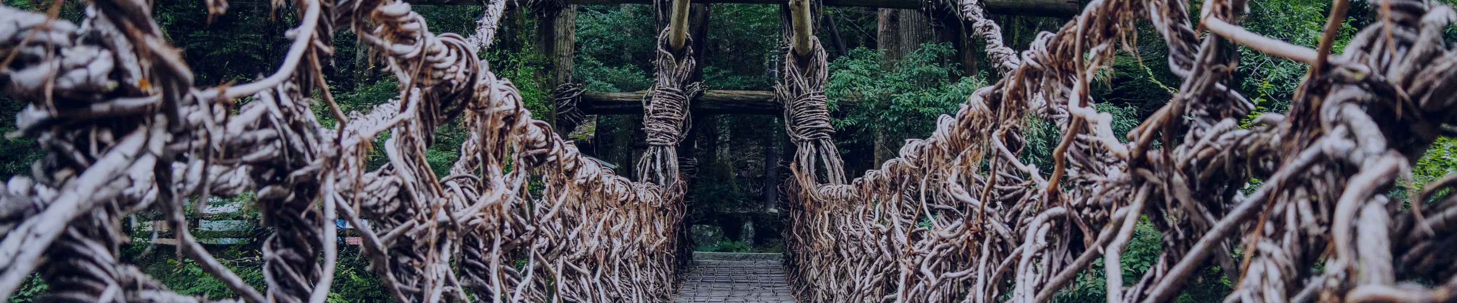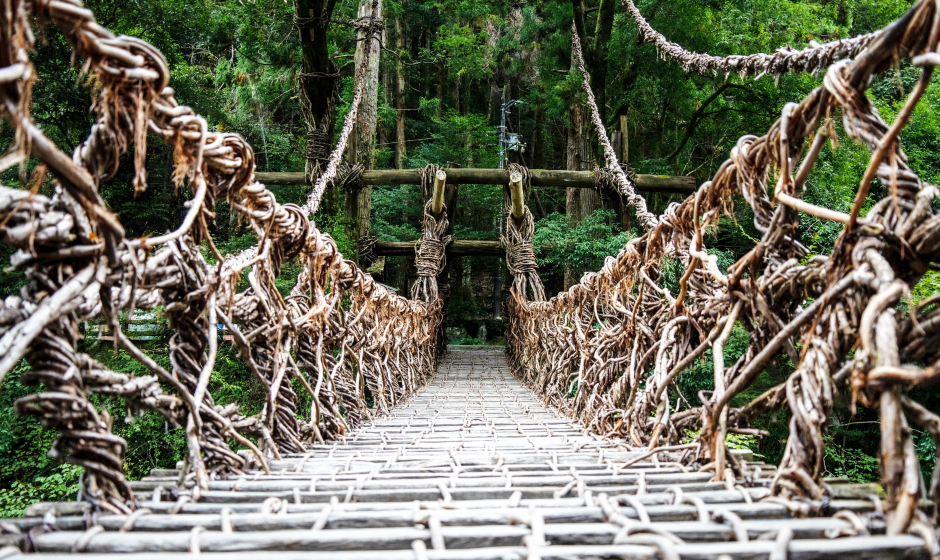 以生長於嚴冬時節荒山上的野生「軟棗獼猴桃」樹枝所編結而成的葛藤橋,是過去住民們的重要通道,本來祖谷川上處處是葛藤橋,但目前僅剩位在西祖谷山村的「祖谷葛藤橋」,以及東祖谷的「奧祖谷二重葛藤橋」兩座藤橋。